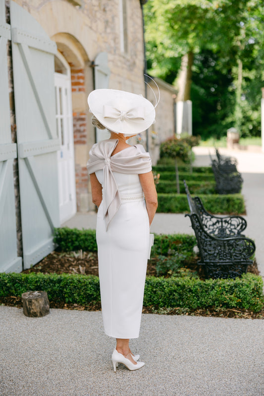 Anoola D463 Ivory & Sand Embossed Cape Neckline Dress