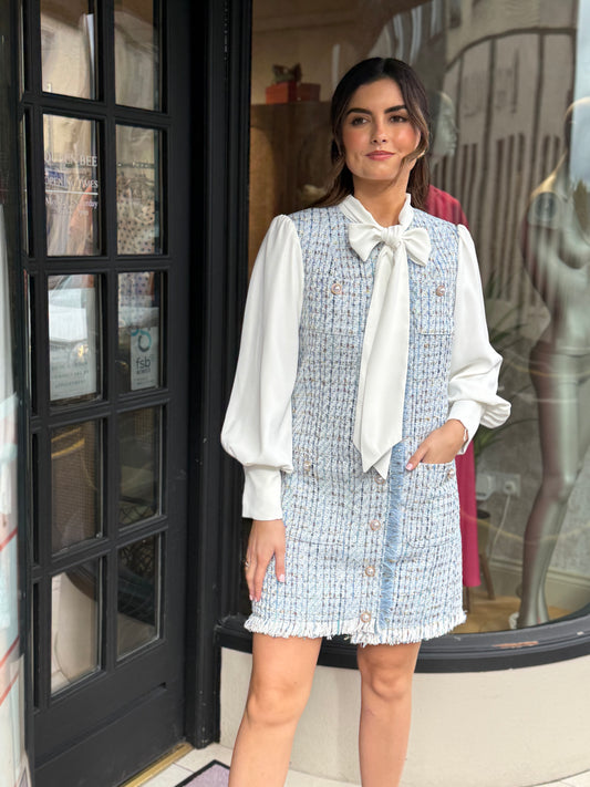 Jovonna Mata Blue Tweed Dress