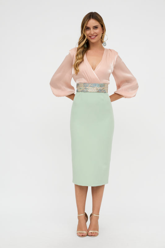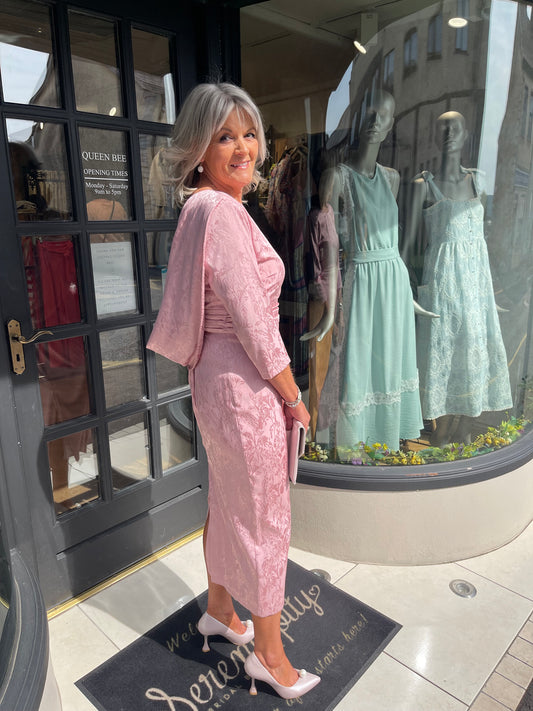 Caroline Kilkenny Dacota Dress in Embroidered Sequence Pink