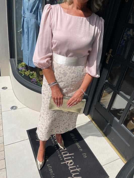K Design Z502 Pink & Navy Maxi Shirt Dress