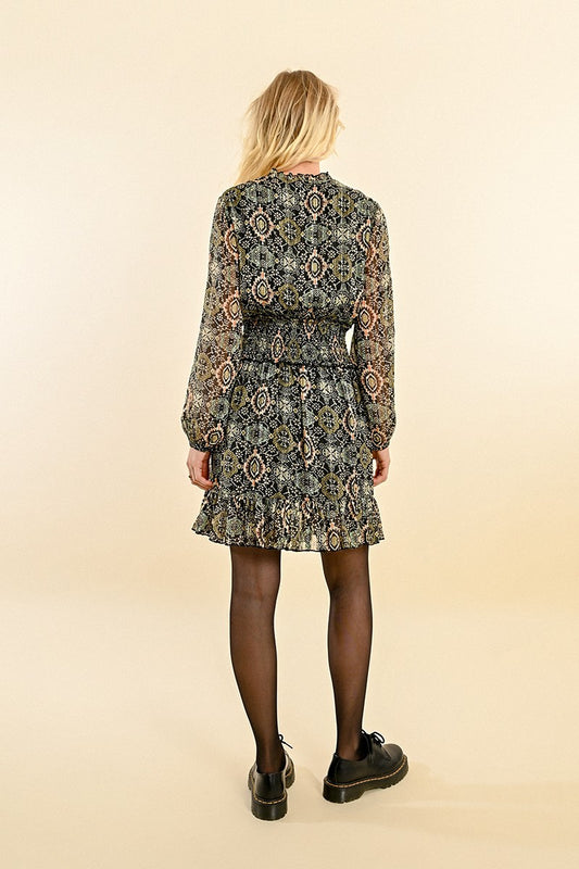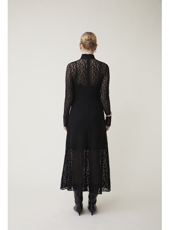 Suncoo Black Lace Midi Dress with Long Sleeve H24C03288 Robe Ciara