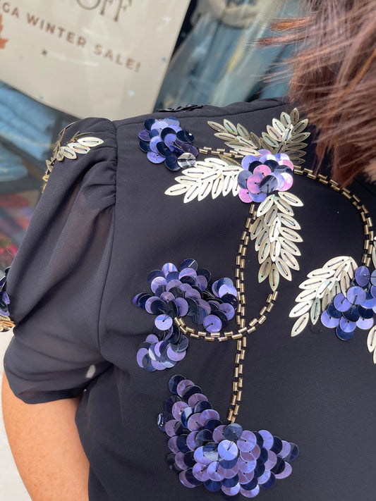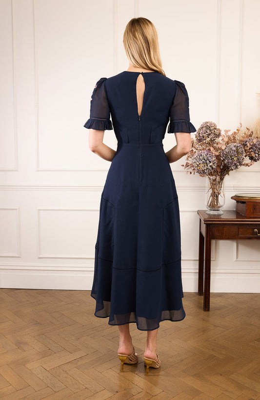 Hope & Ivy Navy Clarice Ruffle Trim Sleeve Dress