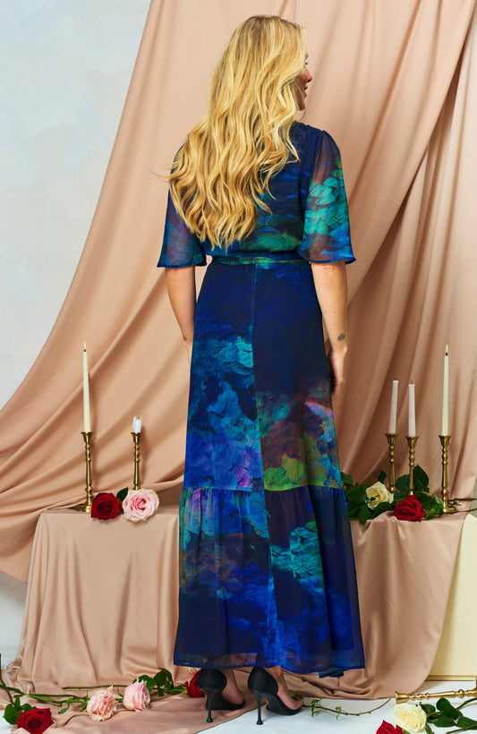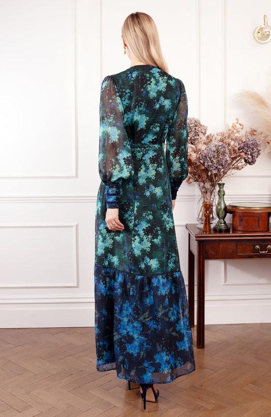 Hope & Ivy Briony Wrap Dress Green and Blue