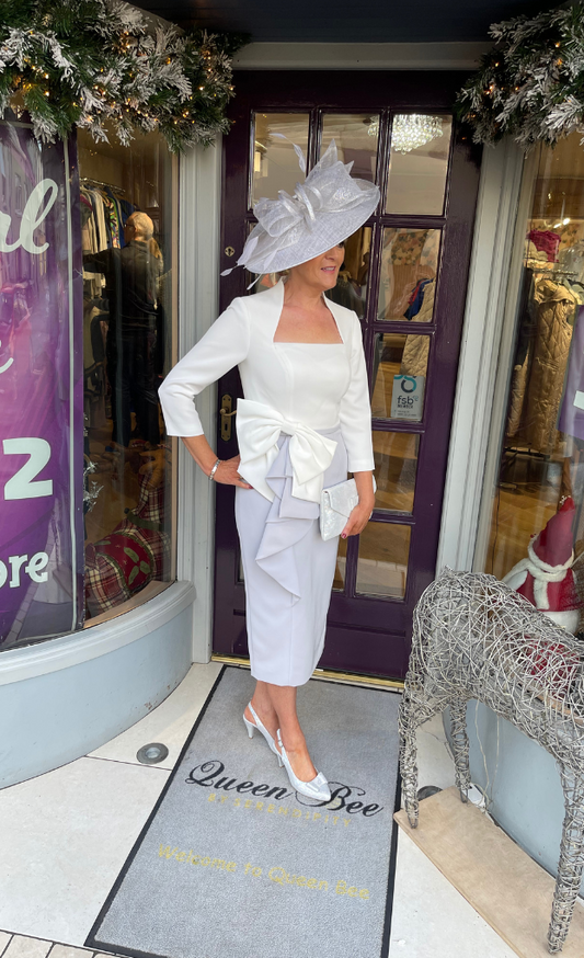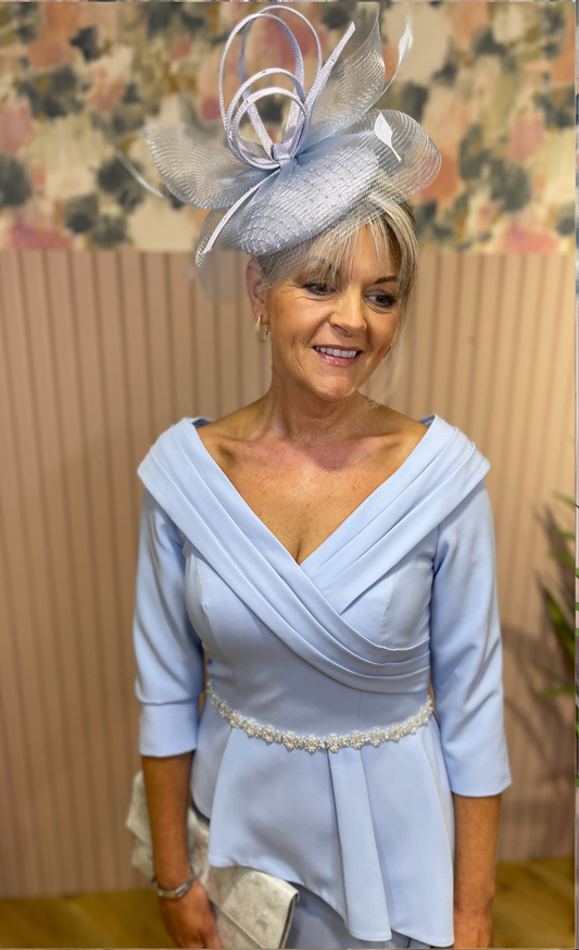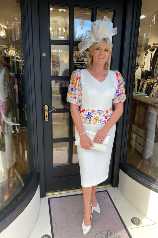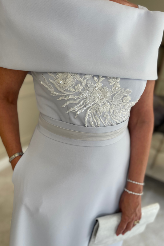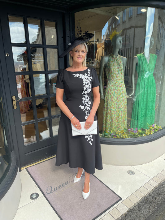 Gill Harvey Navy Beaded Feather Sleeve Dress 8034