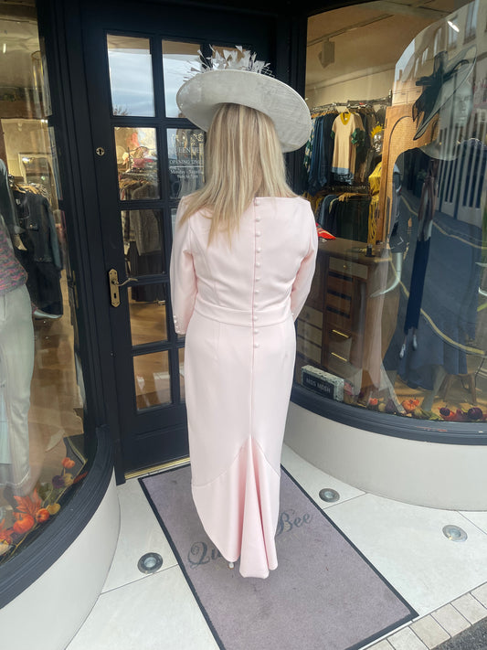 Gill Harvey 8008 Mid Length Beaded Feather Dress Pink