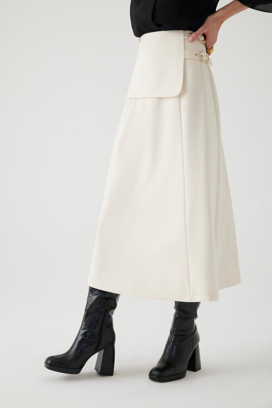 Exquise Aja Cream Skirt with Gold Buckle Style 4115003