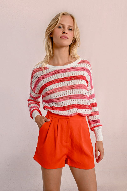 Molly Bracken T1989DP Pink Stripe Wrap Top