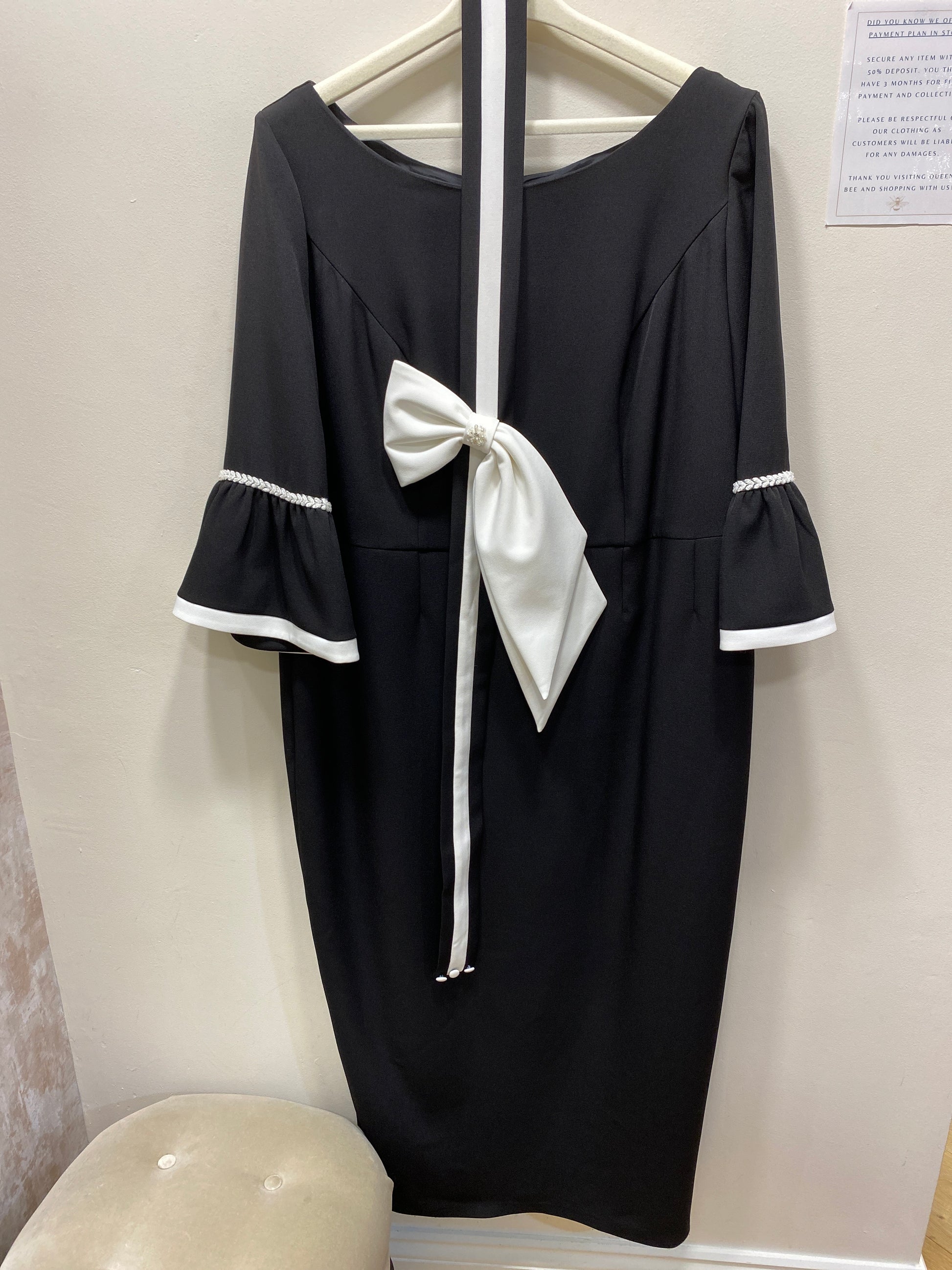 Anoola D434 Black & Ivory Bell Sleeve Dress