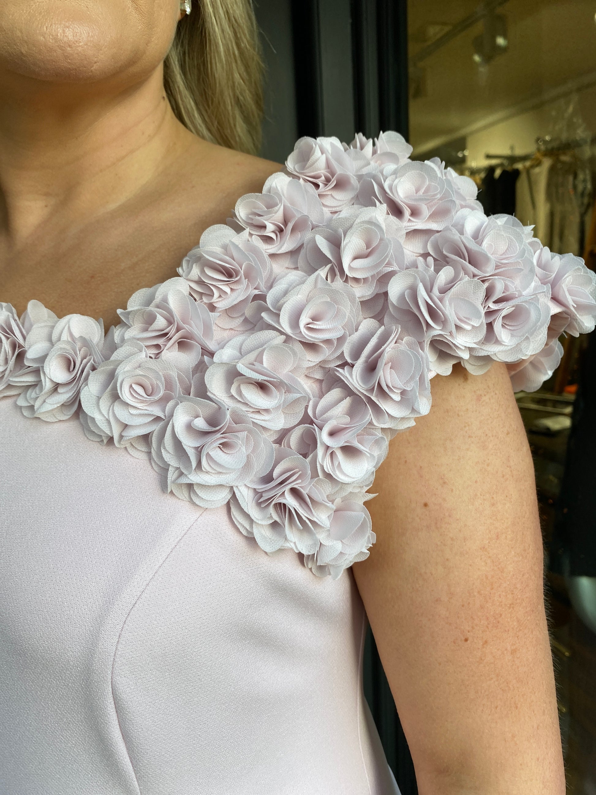 Introducing the stunning Anoola D461EF Ice Pink Dress – a show-stopping piece that's impossible to ignore! This gorgeous gown features an eye-catching 3D flower design paired with a chic one-shoulder bardot neckline that flatters beautifully. The pearl-detailed waistline adds an elegant touch of sophistication. This ice pink beauty combines modern design with timeless elegance. Make a memorable entrance in this truly unique dress!