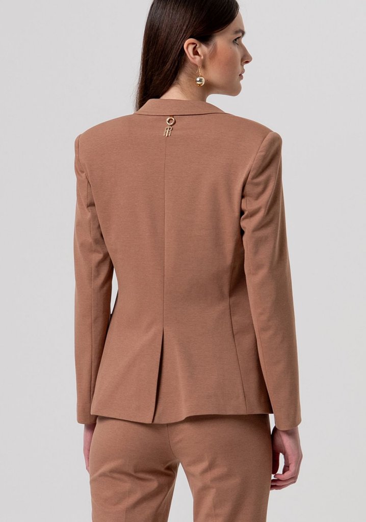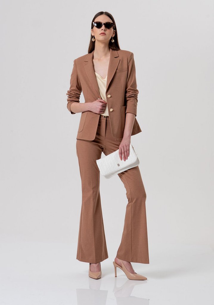 Elevate your wardrobe with this stunning Fracomina J2002 two-piece suit in rich cacao! This sophisticated ensemble combines a perfectly tailored blazer with matching bootcut trousers, creating an effortlessly polished look for any occasion. The warm, luxurious cacao tone flatters all skin tones and pairs beautifully with your existing pieces. Whether you're heading to the office, a special event, or want to make a confident statement, this versatile set delivers timeless style and impeccable tailoring. Experience the luxury and elegance that Fracomina is renowned for!