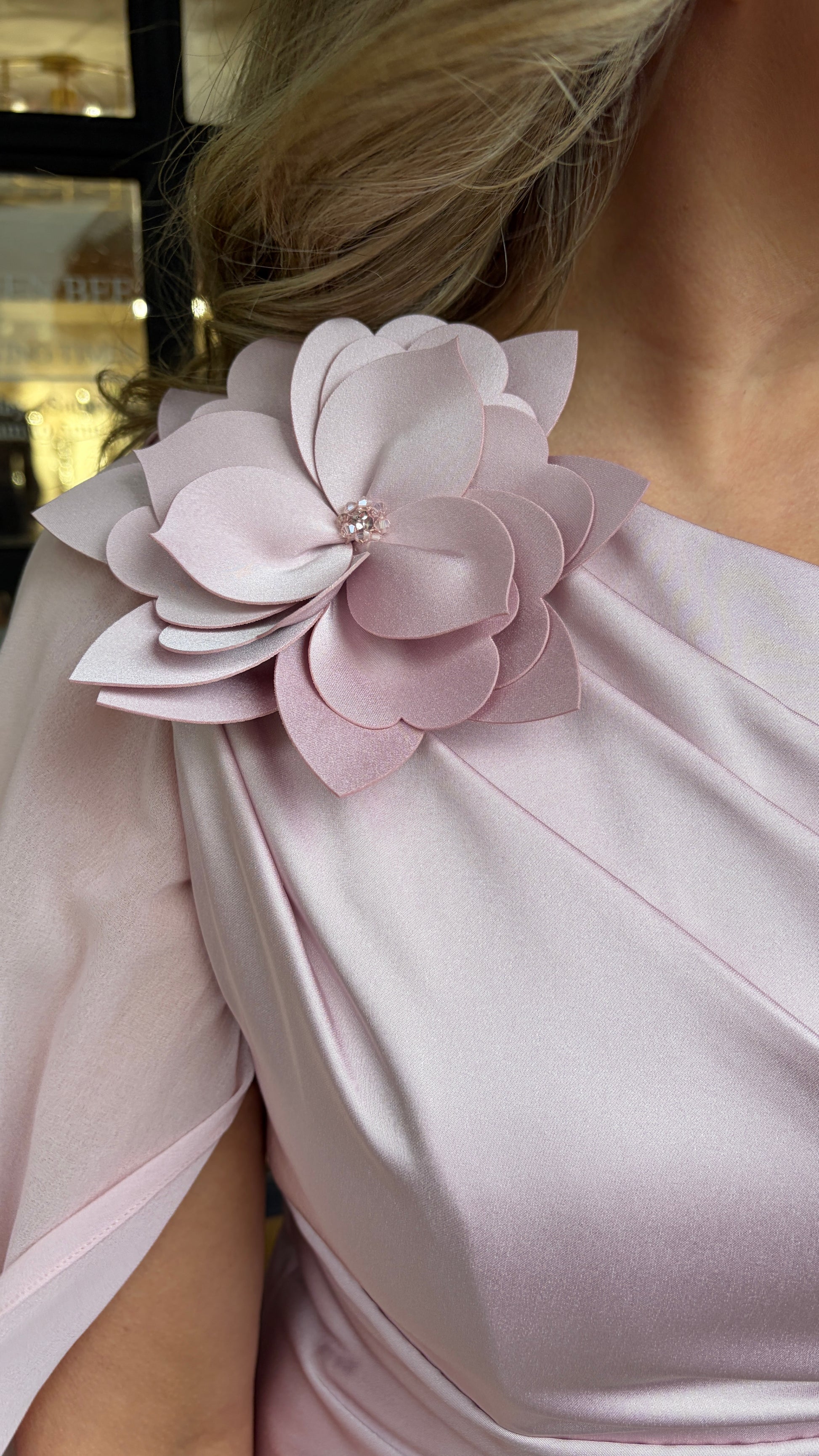 Elevate your special occasion look with this stunning John Charles Petal Midi Dress! Crafted in luxurious lightweight crepe, this sophisticated pencil silhouette features beautifully placed soft pleats that sculpt and flatter your figure. The dreamy chiffon cape sleeves flow gracefully, adding movement and elegance to every step. A gorgeous tonal floral corsage paired with delicate beading adorns the neckline, creating a refined shimmer that catches the light. Perfect for Mother of the Bride or Groom, this timeless design combines classic sophistication with modern glamour—a show-stopping choice you'll treasure!