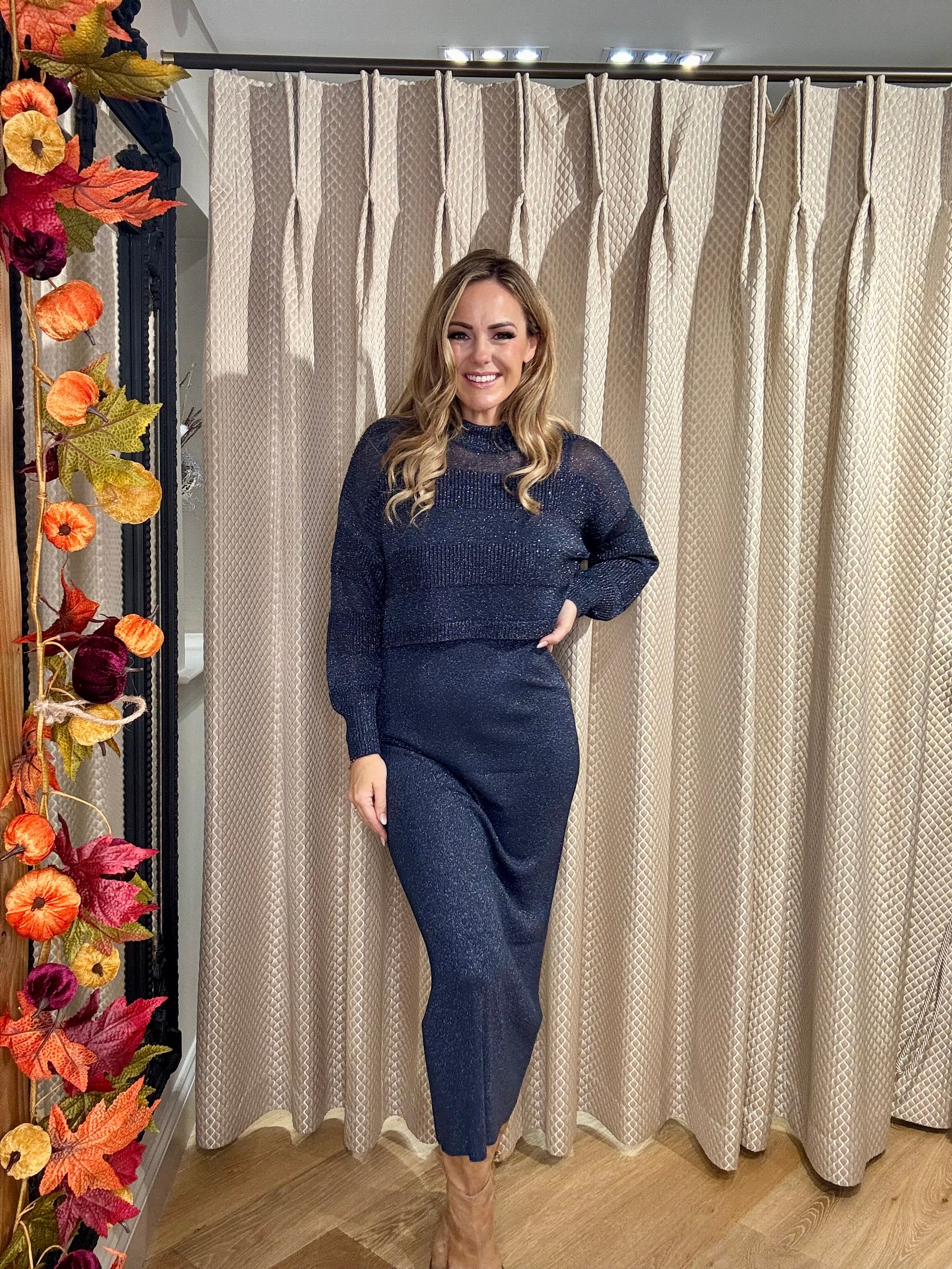 Get ready to shine in the K Design B494 Dress and Jumper Set in stunning insignia blue! This stylish duo combines a chic dress with a cozy jumper, perfect for layering and making a bold fashion statement. The vibrant blue shade adds a fresh pop of color to your wardrobe, effortlessly blending comfort and contemporary style. Ideal for any occasion, this set promises to keep you looking fabulous and feeling confident all day long!