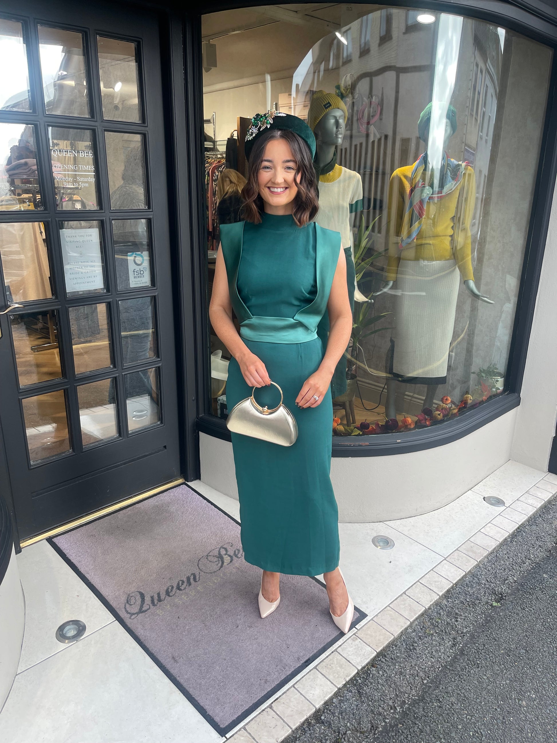 The Forest Green colour lends a sense of timeless charm and modern allure to the dress, ensuring it is a versatile and stylish option for a range of events. Whether you're attending a wedding, celebrating a special occasion, or simply seeking a refined and polished look, this Matilde Cano Designer dress is sure to command attention. The perfectly tailored fit and elegant midi length create a silhouette that is both flattering and graceful, while the exquisite satin detailing adds an element of understated glamour. Designed to make a lasting impression, this dress combines classic sophistication with contemporary allure.