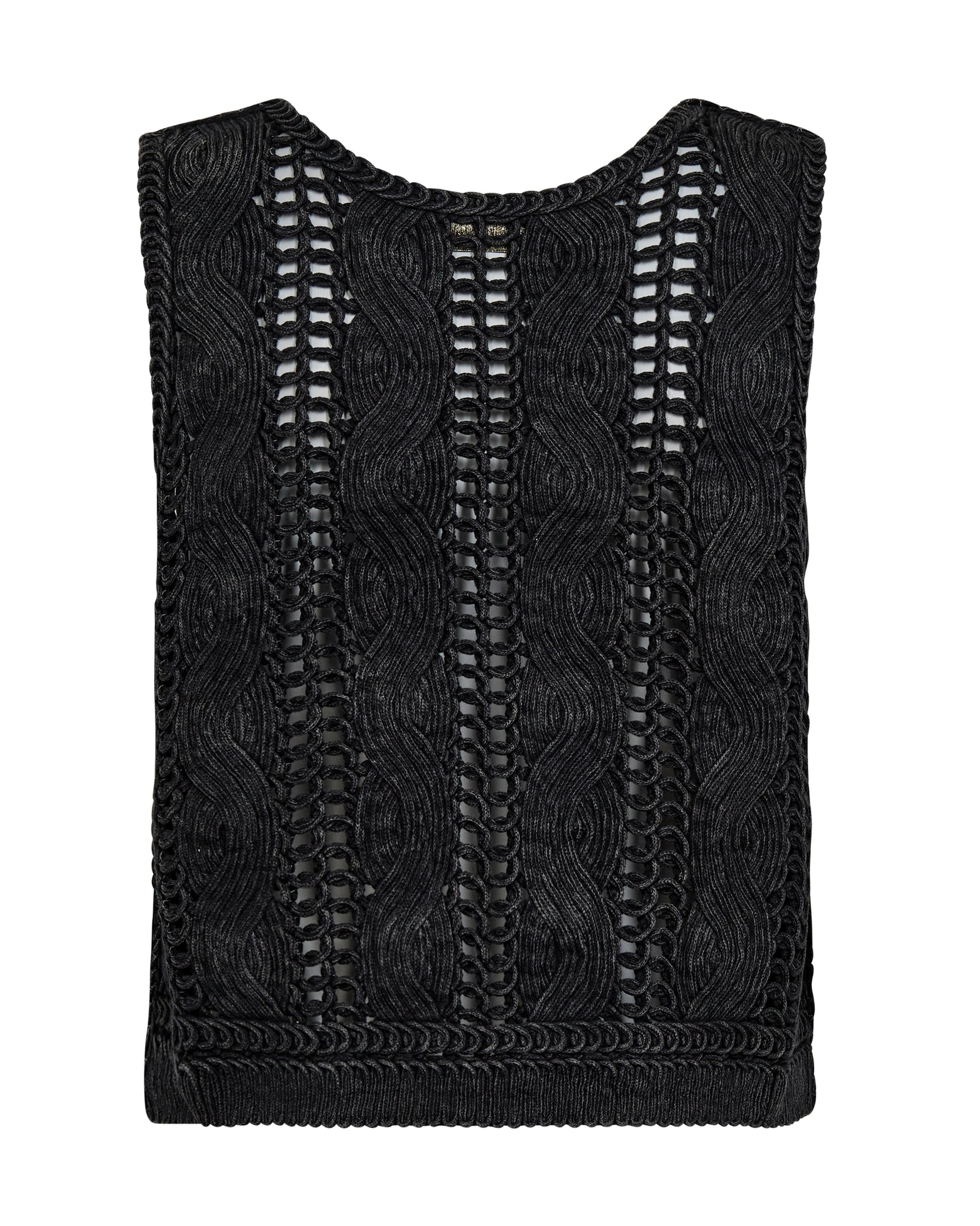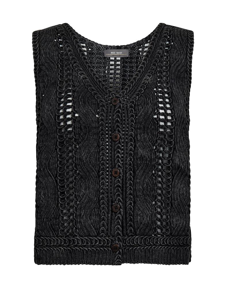 Elevate your wardrobe with the Mos Mosh Albanju Black Lace Knit Vest! This stunning piece features a flattering V-neck and classic button closure, crafted in a delicate lace pattern that adds feminine charm and texture. Perfect for layering over your favourite shirts or blouses, it effortlessly brings sophistication and style to any outfit. Get ready to turn heads with this versatile and elegant vest!