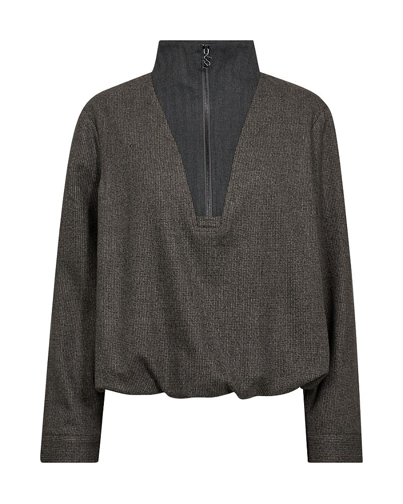 This Mos Mosh Soleia Zip Blouse combines relaxed comfort with standout style. Featuring a sleek standing collar and a zipper placket with a striking detail, it’s crafted from two contrasting fabrics for a fresh, modern look. Buttoned cuffs and an elasticated hem add comfort and versatility, making it perfect for layering. Pair it with matching pants or jeans to create a chic, effortlessly cool outfit that’s ready for any occasion.
