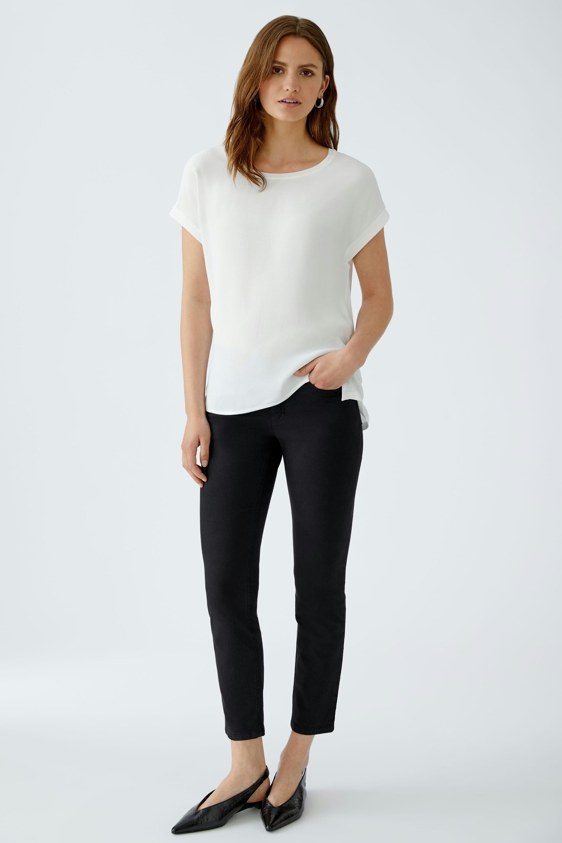 The Oui T Shirt Cloud Dancer Short Sleeve is crafted from high-quality materials, featuring a neutral color that enhances versatility. The short sleeves and side slits provide breathability and ease of movement, making it suitable for various occasions. Ideal for layering or standalone wear, it combines functionality with understated style.