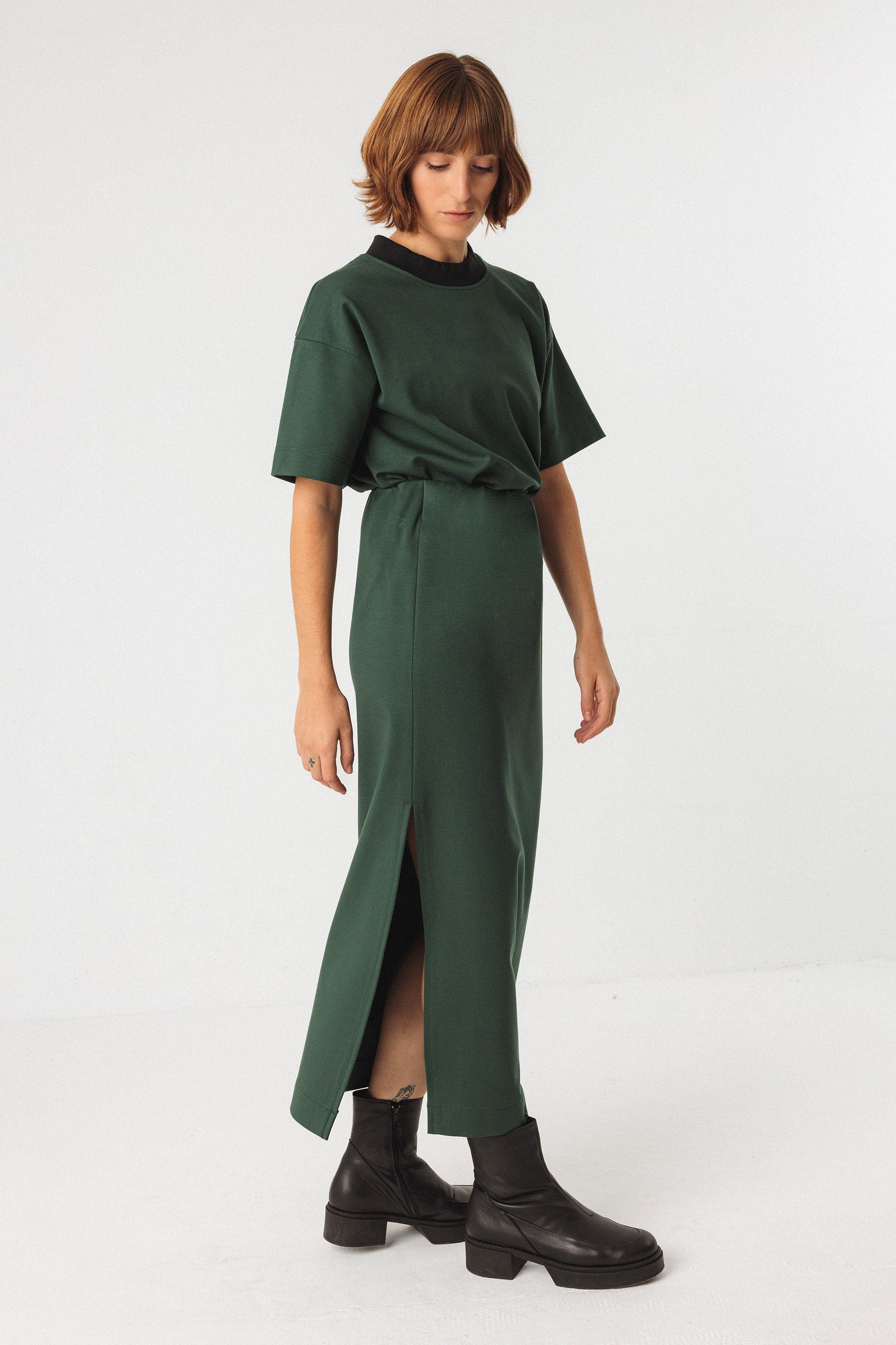 Discover the SKFK Hozta Dark Green Skirt, designed to combine style and comfort effortlessly. This straight skirt features an elasticised waist for a perfect fit and side slits that add a touch of flair and ease of movement. Its rich dark green hue makes it a versatile addition to your wardrobe, ready to elevate any outfit with a fresh, elegant vibe.