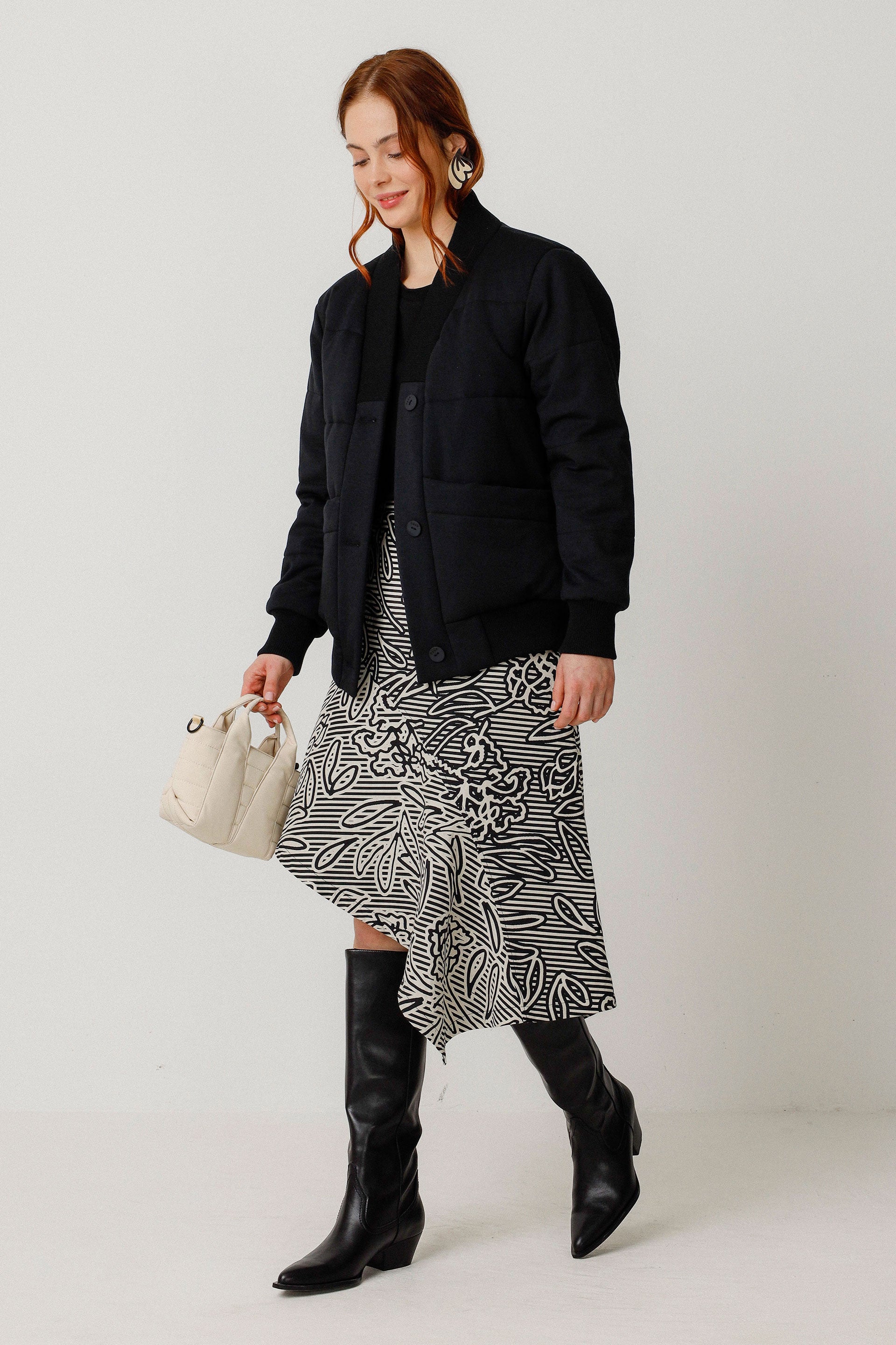 The A-line shape of the Nethe Skirt ensures a flattering silhouette, making it a wardrobe staple for those who appreciate both style and comfort. The middle seam adds a unique design element, setting this skirt apart from traditional black skirts. Whether you're looking for a statement piece or a versatile staple, the Nethe Skirt offers the best of both worlds. This skirt is a must-have for fashion-forward individuals who appreciate the artistry and creativity of SKFK designer. With its back zip for easy wear, the Nethe Skirt combines practicality with high-end fashion, catering to the needs of modern, on-the-go lifestyles.