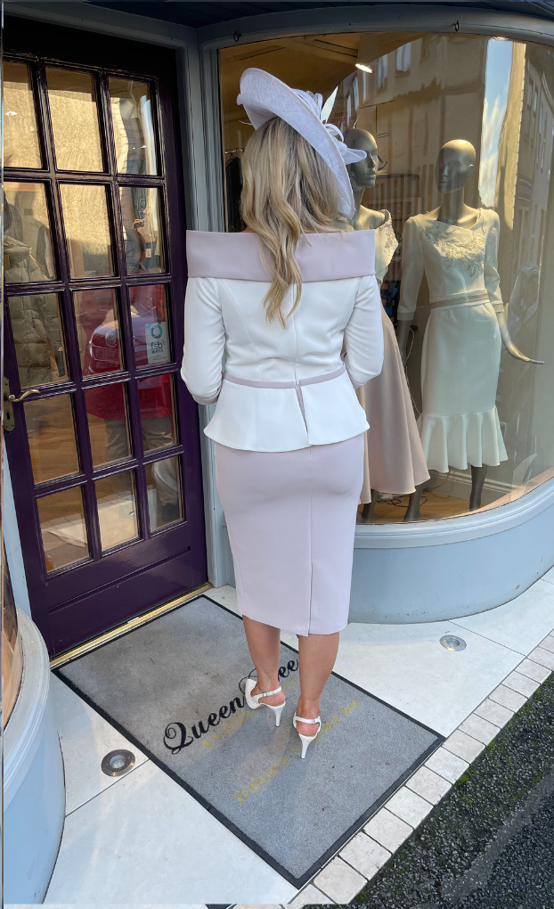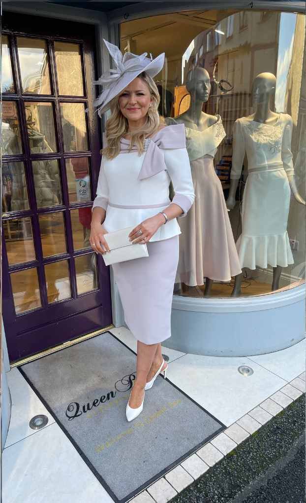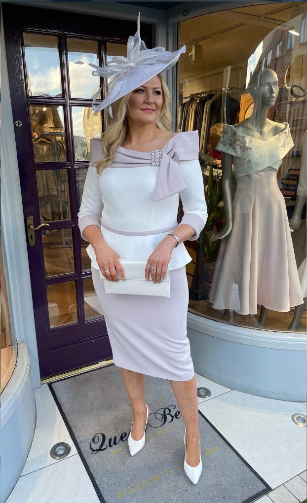 Perfect for a modest mother looking for a modern twist. This stunning asymmetrical knee-length features 3/4 length sleeves and beautiful brooch detail.